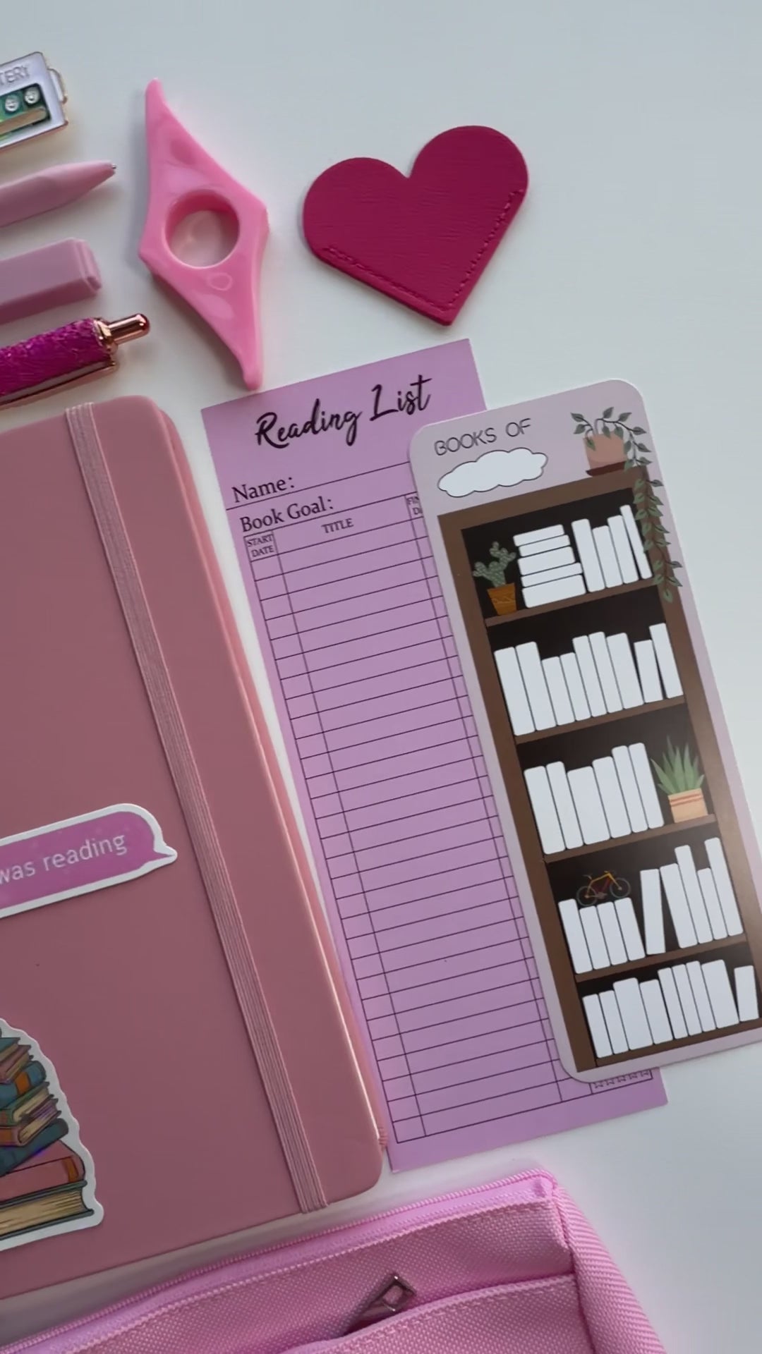 Note: Sticker and bookmark designs may vary slightly based on availability, but the overall pink aesthetic will always remain consistent.